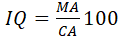 The word intelligence, in brief, is one’s ability and capability to think and reason abstractly, and to handle or comprehend mental concepts. An IQ is an abbreviation of Intelligence Quotient. The word intelligence, as we read earlier, is one’s ability and capability to think and reason abstractly, and to handle or comprehend mental concepts. But quotientmeans the result (outcome) of dividing two numbers. So IQ is a number (or score) which represents the mental abilities and capabilities of a person in comprehending complex abstract ideas and his level of quickness in generally learning new concepts and reasoning logically from experience. Mathematically, IQ can be defined as the ratio of mental age (mental ability [MA]) to chronological age (CA) multiplied by 100. It is expressed as . Performance of a person’s abilities and capabilities (intelligence) can be measured by using IQ tests (IQTs) or standardized intelligence tests [SITs] (standardized psychometric tests [SPTs]).
