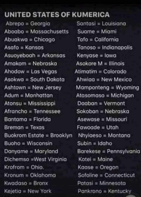 Ghana Web (28 August 2020). “Social media trends: Fun facts about ‘Kumerica'”. Ghana Web.